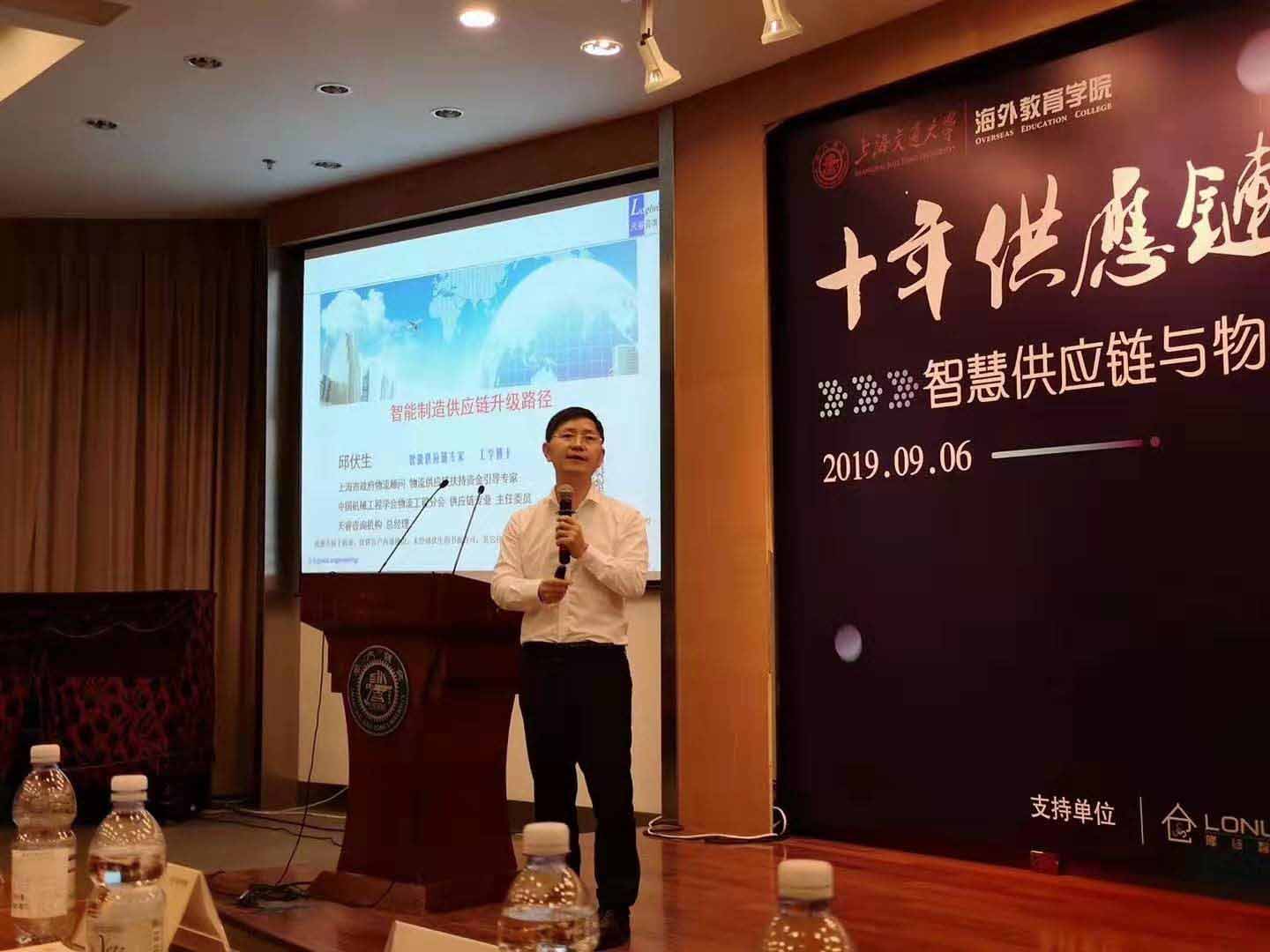 2019年9月7日,邱伏生老師為上海交通大學(xué)海外教育學(xué)院的交流活動——十年供應(yīng)鏈:智慧供應(yīng)鏈與物流變革,發(fā)表題為《智能制造供應(yīng)鏈升級路徑》的演講。