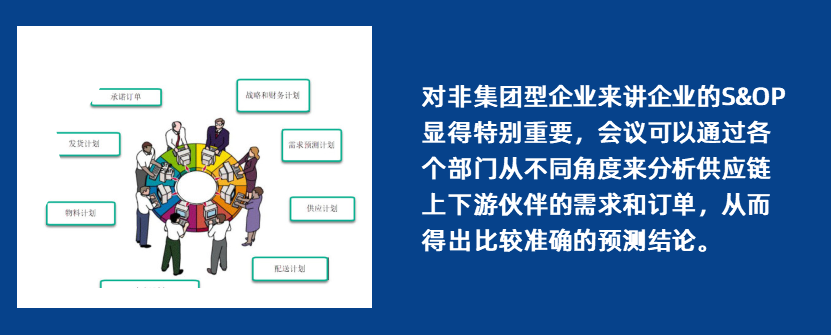 對非集團型企業(yè)來講企業(yè)的S&OP顯得特別重要,會議可以通過各個部門從不同角度來分析供應鏈上下游伙伴的需求和訂單,從而得出比較準確的預測結論。同時,對預測還要采用滾動預測的方法來進行,至少為12個月,最好是18個月。有的人認為18個月的預測是不是“天方夜譚”,毫無準確可言。但許多供應鏈管理者認為,通過堅持進行長期預測,一定會發(fā)現(xiàn)一些規(guī)律,對長周期零部件的采購特別有利,尤其是對新產品投產預測,因為零部件企業(yè)的新產品不僅僅是面對單一客戶。